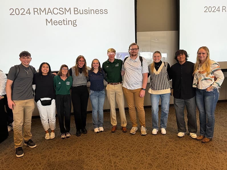 Tracey Robinson, Ph.D., professor of kinesiology, and Kris Mugrage, lecturer of kinesiology, accompanied ten students (8 undergraduate and 2 graduate) to the Rocky Mountain American College of Sports Medicine conference in Colorado Springs in April.