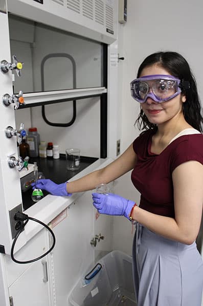 Chemistry major Michelle Aguirre is taking the CURE project a step further with her independent research, also supported by the NSF grant. She designed a molecule to sense zinc in water, which indicates the presence of heavy metals. She hopes to continue that type of work, possibly in graduate school.