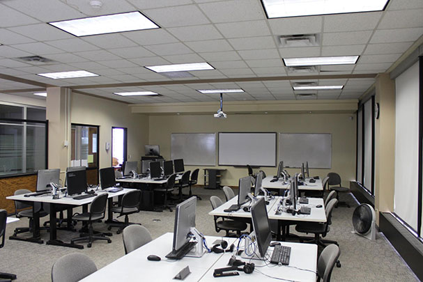 • Features: 24 student computers, instructor computer, data projector, Smart Board, black and white laser printer