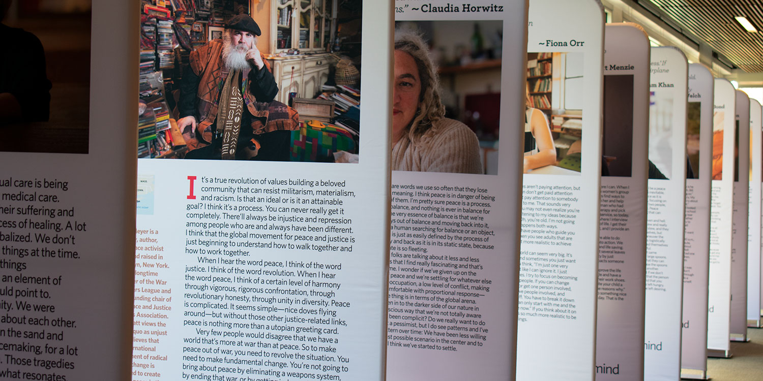 Currently, the exhibit “Peace of Mind”, featuring two studio days of capturing photographs and stories, is on display in McDaniel Hall first floor atrium and continues through September 12.