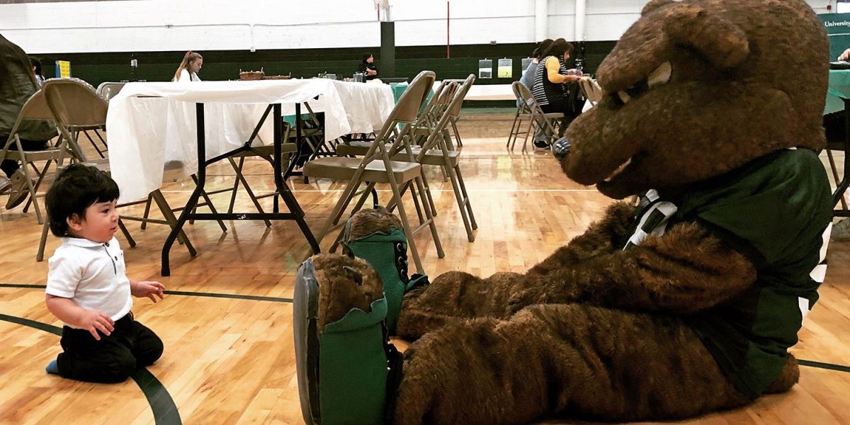 With no tuition increase, it’s never too early to start thinking about Adams State . Pictured, Adams State Mascot Boomer charms a fan at the SLV Registration Night on April 10.