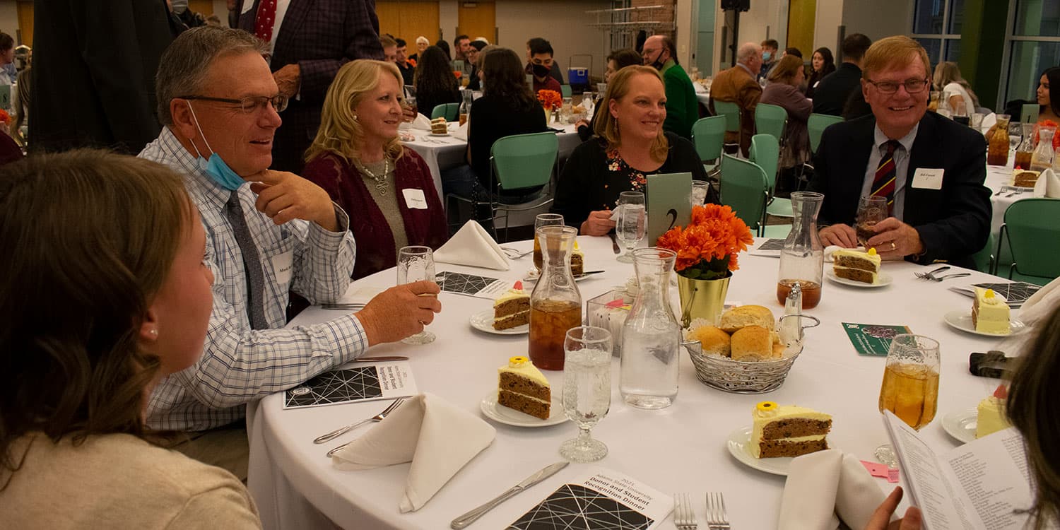 Tables buzzed with conversation and laughter as students engaged with donors who support their academic careers through scholarships and donations. The annual event recognizes the Adams State University Foundation Willis Fassett Jr. Award recipients as well as the Athletic Department Grizzly Club Awards.