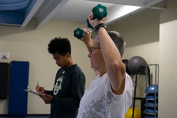 Graduate students focused more on exercise science education for participants and provided individualized attention to correct workout form, or provide modifications for exercises difficult to perform or out of reach. Additionally, all together students perform exercise testing on this special population, collecting data to produce a fitness age and measure overall physical fitness at the beginning and at the end of the program.