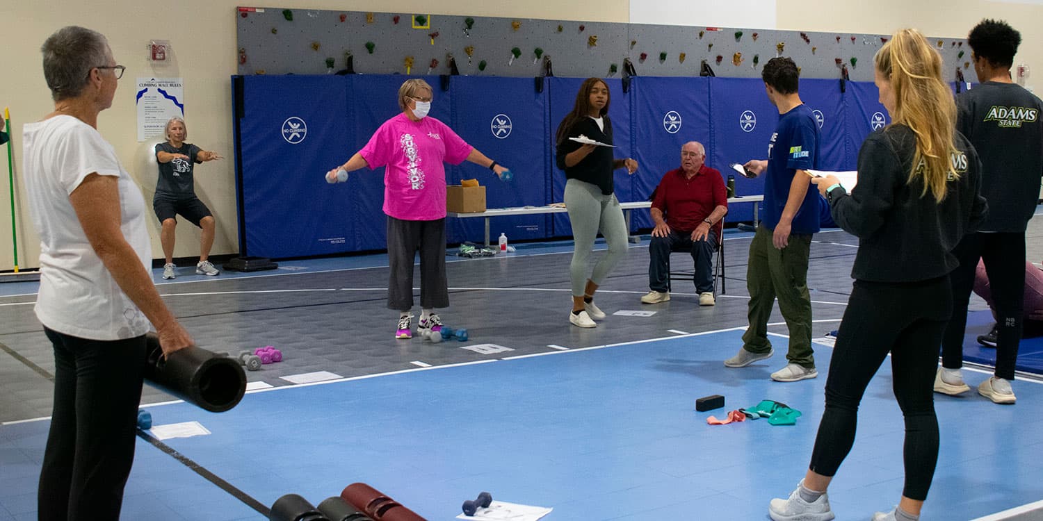 It’s a brisk fall morning in the Alamosa Recreation Center and the atmosphere in the large multi-purpose room is one of determination and optimism as cancer survivors of various ages and abilities take part in the Adams State University Department of Kinesiology Larry Holder Exercise and Cancer Survivorship program.