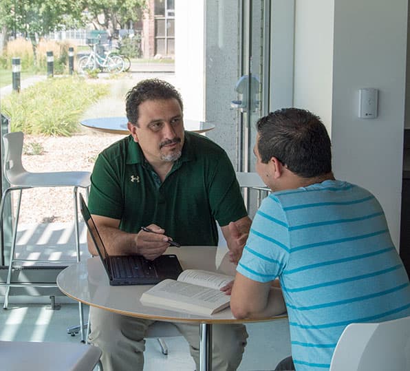 Mark Manzanares speaks to a studentHis vision allowed him to serve the psychology/counselor education department well. As an instructor of psychology/counselor ed and working on his doctorate, Dr. Manzanares developed and designed counselor education’s technology presence, acting as the department webmaster and technology coordinator and was the institution’s administrator of the learning management system (WebCT and BlackBoard).