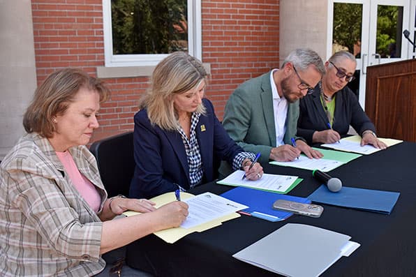 On Wednesday afternoon, July 31, Adams State University President David Tandberg, Ph.D., and Trinidad State College President Rhonda Epper, Ph.D., took a bold step in solidifying ten new transfer agreements that will allow students to seamlessly transfer from Trinidad State into bachelor’s degree programs at Adams State. These agreements have been over a year in the making. Drs. Tandberg and Epper noted that Adams State and Trinidad State are committed to improving transfer for students.