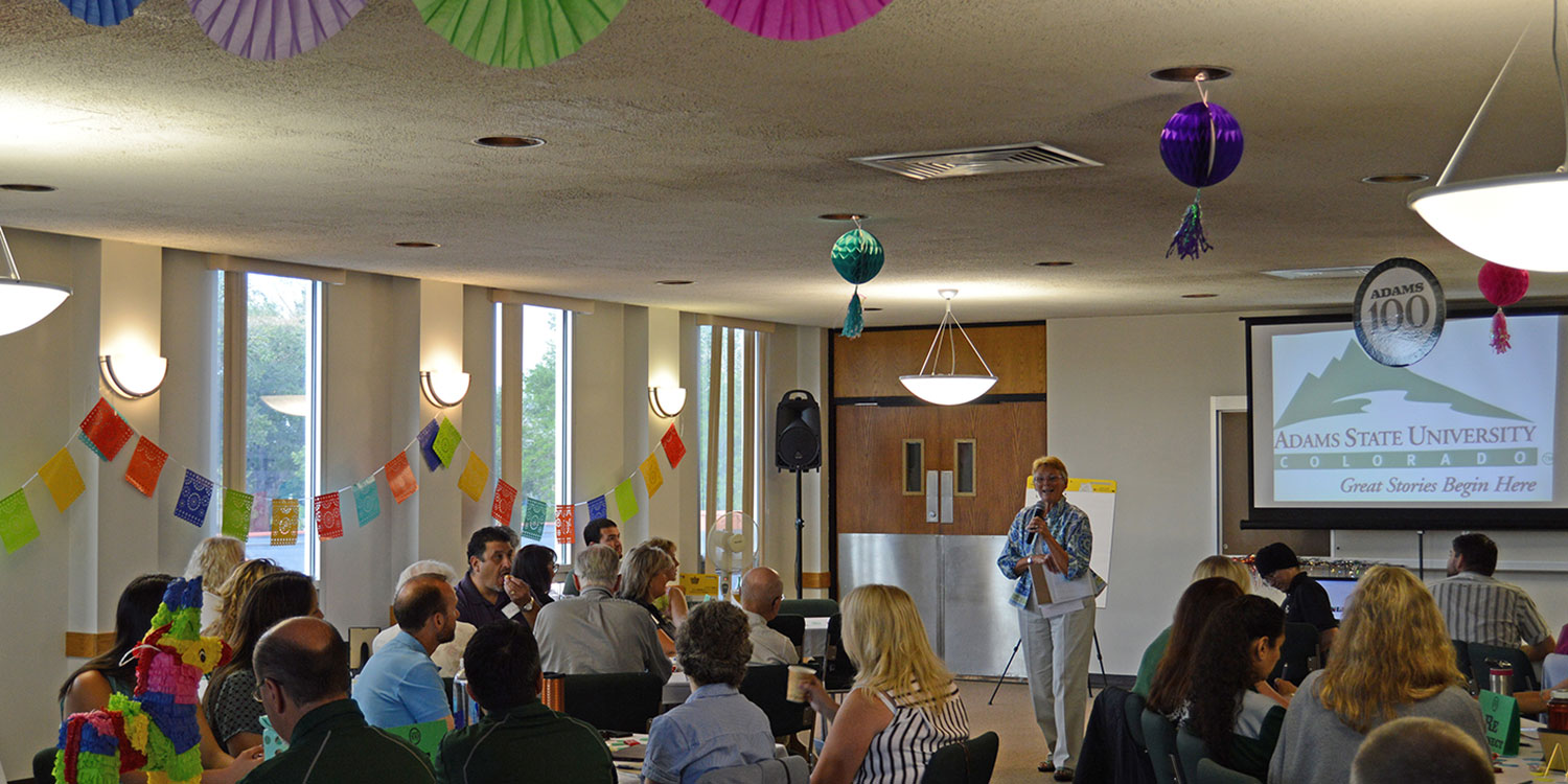 The Adams100 Commission was created by the school’s board of trustees to plan events for Adams State’s 100th birthday in 2021. Its membership includes Alamosa Mayor Ty Coleman; Herman and Patsy Martinez, who in 1972 established Las Semillas de la Tierra dance group at Adams State among other efforts; local business leaders Kindra Lambert and Wendi Seger; Alamosa State Bank President Russ Achatz; First Southwest Bank President Jeni Jack-Goodwin; Alamosa County Manager Gigi Dennis; Alamosa community treasure Mary Motz; Monte Vista community treasure Colette Skeff; former Adams State presidents Bill Fulkerson and Tom Gilmore, among other members.