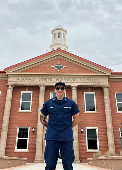 Becoming an officer in the US Coast Guard has been Haight’s guiding light. Even before finishing high school, he set his sights on the Coast Guard College Student Pre-Commissioning Initiative (CSPI), a scholarship program. Accepted into CSPI his senior year at Adams State, Haight completed basic training last summer and after graduation he begins officer training at the Coast Guard Academy, in New London, Conn.