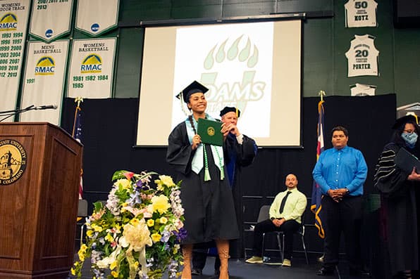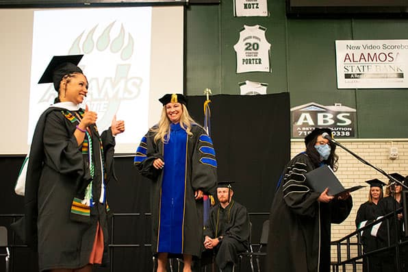 The sun shone brightly in a blue sky, matching the atmosphere as Adams State University once again celebrated the accomplishments of students as they crossed the platform on May 14, 2022. Below are highlights, to view more images, visit the Adams State Facebook page or view the ceremonies on the Adams State YouTube channel.