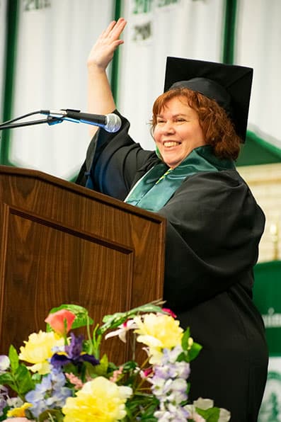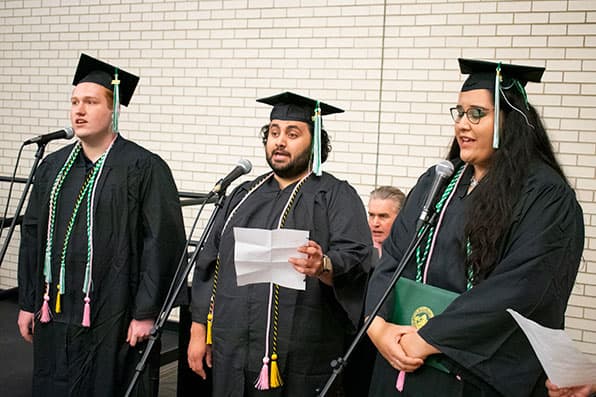 The undergraduate ceremony awarded 120 associate degrees and 192 bachelor’s degrees.