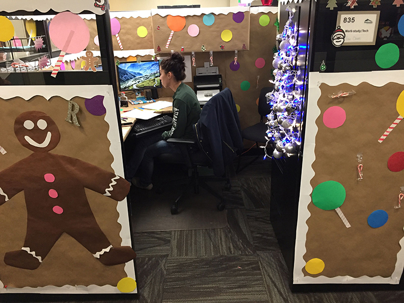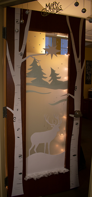 VP Marquez and AVP Doell toured the campus to judge 19 different entries in the annual Professional Administrative Staff Council (PASC) holiday door decorating contest.