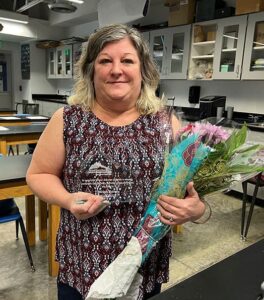 She’s been teaching biology and math for 29 years. Lavier presented her with a bouquet of flowers for all the time she’s spent educating Alamosa youth and to highlight her as one of the Valley’s outstanding educators.