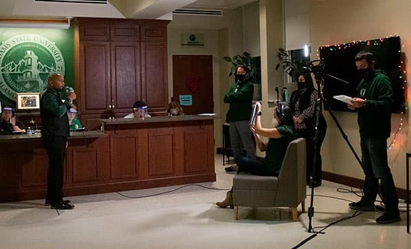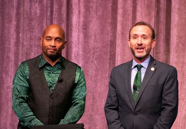 Hosts Alamosa Mayor Ty Coleman and Director of the School of Visual and Performing Arts John Taylor, Ph.D., keep the show rolling.
