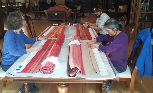 During the course of her internship, Rodriguez curated and mounted an exhibition of five representative blankets from the Luther Bean Museum Hispanic weaving collection. She devoted her first year to study and scholarly research including visiting nearby museums with extensive textile collections and consulting with curators and conservators.