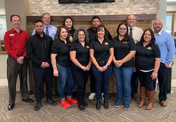 Pictured, left to right, Kyle Burnett, SLV Federal Bank Marketing Officer; Edgar Martinez, MEP; Mark Bechaver, SLV Federal Bank CEO; Karla Guaderrama, MEP; Diana Morales, MEP; Marisa Aguilar, MEP; Alfonso Nuñez, MEP; Esmeralda Martinez, MEP Director; Diana Gonzalez, MEP; Walter Roybal, SLV Federal Bank Commercial Loan Officer; Minga Francisco, MEP; and Joe Martinez, SLV Federal Bank President.