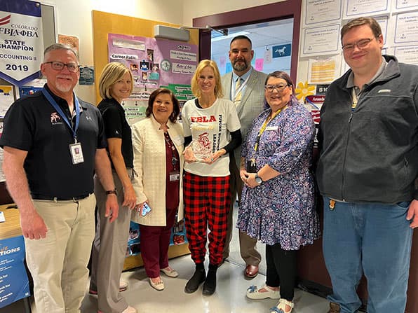 On May 1 she became the first business teacher and FBLA advisor to receive the Educator Highlight Award from the Adams State School of Education. When a contingent from Adams State and the Alamosa School District showed up to present her with the award, she was just launching her class into a session on the value of Roth IRAs.