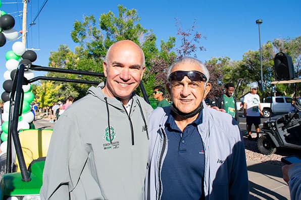 As soon as Coach Vigil, Ph.D., Class of 1953 and 1959, emeritus professor of health, physical education and recreation, arrived on the scene he was beset with admirers, colleagues, former students, and current athletes hoping for a quick visit and, of course, a selfie with the U.S. Hall of Fame Coach.