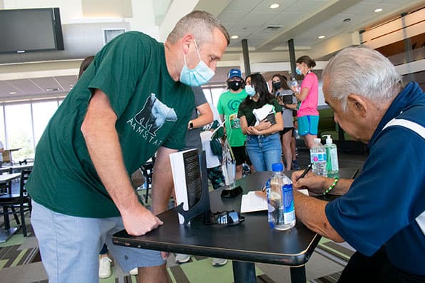 Clutching copies of “Chasing Excellence: The Remarkable Life and Inspiring Vigilosophy of Coach Joe I. Vigil,” crowds gathered in Vistas on Saturday to have their book autographed by Coach Vigil and author Pat Melgares, Class of 1988, national champion and Adams State athletic hall of famer.