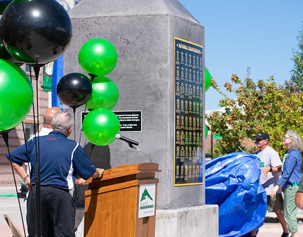 The sun shone throughout the day and warming with anticipation, participants circled round for the unveiling of the monument dedicated to the Adams State 1720 All-Americans, 227 individual national champions, 12 Olympians, and 56 national team titles.