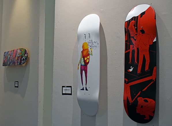 The Visual Art Building is open from 8 a.m. until 5 p.m. Monday through Friday. The skateboard deck exhibit continues through August 8, 2024.