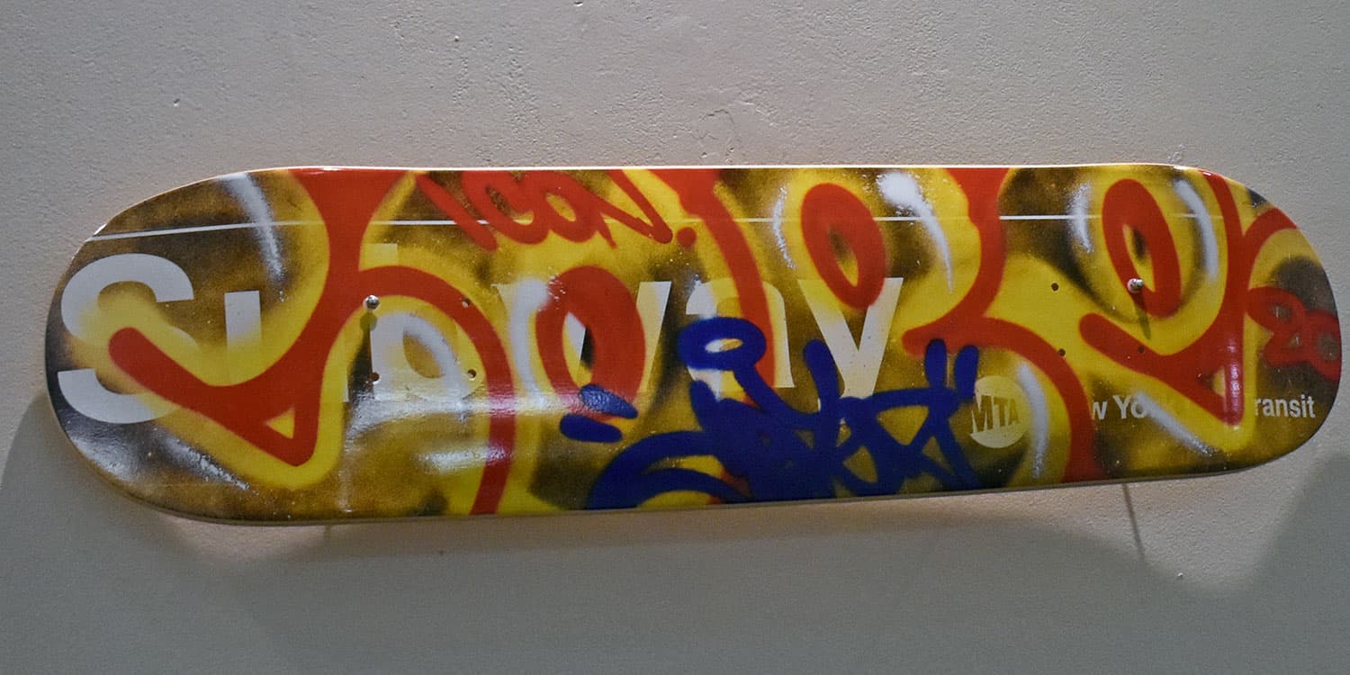 The Adams State University Visual Art Building is currently displaying skateboard decks, with serigraph prints, by many of the foremost contemporary street artists active today including Cryptik, Ron English, Barry McGee, Cleon Peterson, Mars1, Os Gemeos, Cope 2, D*face, Shepard Fairey, and Banksy.