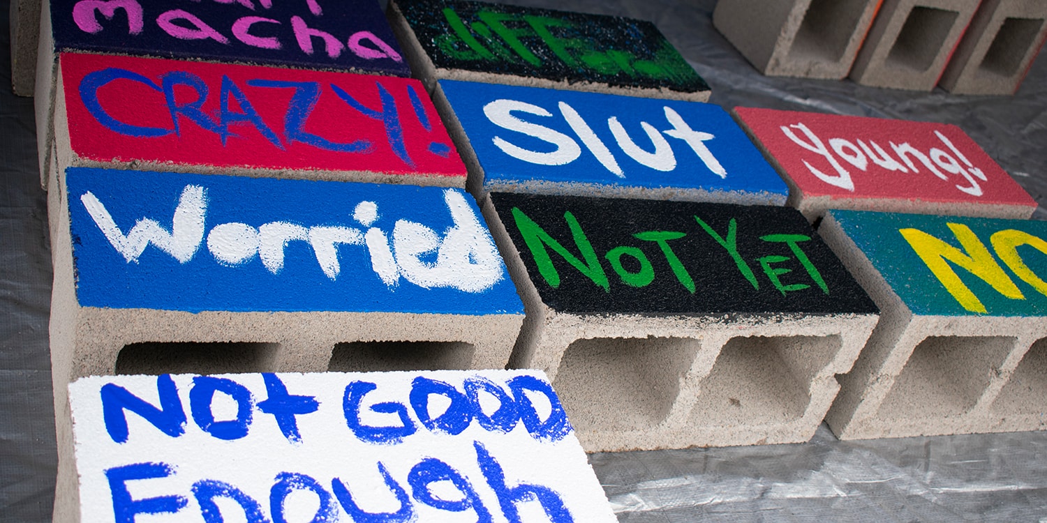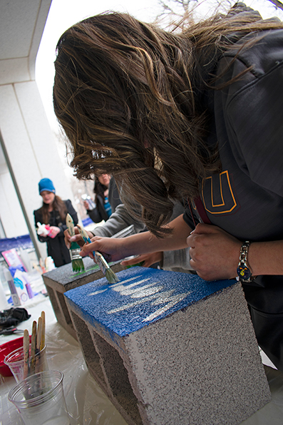 Women’s Week co-organizer Natasha Liebig, Ph.D. visiting assistant professor of philosophy, invites campus and community members to make a mark on the Wall of Oppression from 9 a.m. until 3 p.m. until March 8. Students, faculty, staff, and community members paint a word or small phrase, which made them feel oppressed, on the cinder block wall. “At the end of the week, we will tear the wall down,” Liebig said.