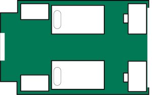 - Furnishings include a wardrobe, desk, desk chair, 2-drawer under-dresser, and Twin-XL platform bed